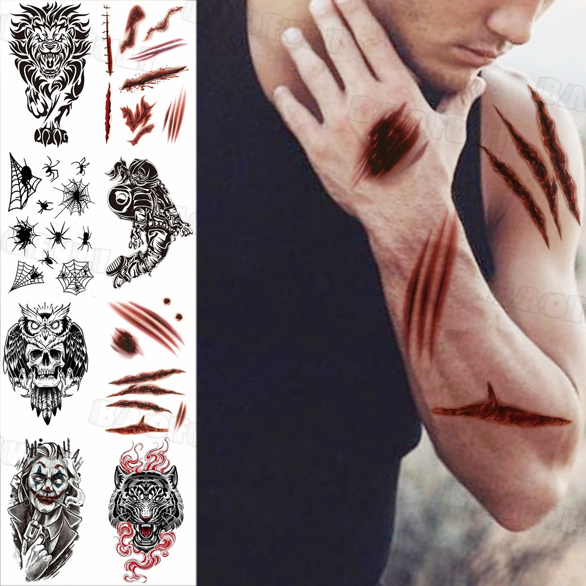 Fake Tattoos That Look Real : Cool Halloween Scar Temporary Tattoos For Men Women Realistic Lion Owl Clown Fake Tattoo Sticker Waterproof Face Arm Tattoo Temporary Tattoos Aliexpress : This makes harassment too easy.. At tattoounlocked.com find thousands of tattoos categorized into thousands of categories. How to make temporary tattoos look real. Though fun, if your temporary tattoo looks like a fake tattoo, much of the fun in wearing it is gone. If you are going to disfigure yourself do it well! • inkbox temporary tattoo review 2018.